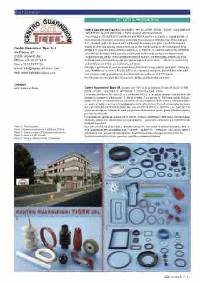 Centro Guarnizioni Tiger srl, founded in 1961, it’s a NBR - EPDM - VITON® - SILICONE LSR - NEOPRENE - FLUOROSILICONE – PARA tecnical articles producer.
